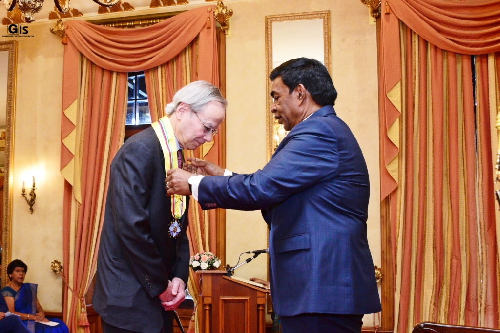 GIS – 09 January 2023: National awards were presented, this morning, to National Day Awardees, Dr Sudhir Hazareesingh and Mr Paul S. Reichler, by the President of the Republic of Mauritius, Mr Prithvirajsing Roopun, in presence of the Prime Minister, Mr Pravind Kumar Jugnauth, during an insignia ceremony held at the State House, in Réduit.